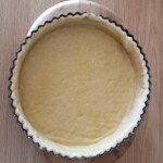 Preheat oven to 200 oC (400 oF, Gas 6). Line pastry shell with non-stick baking paper and fill with baking beads, dried beans or rice and bake for 10 minutes. Remove the beads and bake for another 10 minutes.