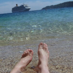 From Dubrovnik, you can catch a ferry which circulates around a handful of islands, all within an hour of each other so visiting two or three in one trip is not impossible. We took the ferry to Lopud as we had heard there was a magnificent beach on the other side of the island from where the ferries docked. Arriving at around 10 am at Lopud harbour from a 40 minute trip from Dubrovnik we took in the sights for a while then headed out into the wilderness. We were told that the beach was only a short walk away and was pointed in the right direction by a shop keeper. What we weren’t told was that it was a wooded and very rocky path which after walking for 30 minutes has almost destroyed the flimsy espadrilles we were wearing. Soon enough we saw the light at the end of the tunnel and were greeted with a fantastic view of a sandy bay with a rustic looking shack serving up cold drinks and freshly caught Blue Fish which were roasted on a BBQ. It was amazing and we settled down under a palm to take it all in.