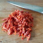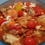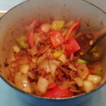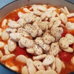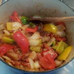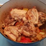 The night before you plan to cook the casserole, if the butter beans are dried soak them in water. Pre-heat the oven to 180 degrees. Remove the skin from the chicken thighs and brown them off in the casserole dish. Once the chicken thighs have been browned, place them in a bowl and set to one side. Roughly chop the onion and add to the casserole dish. Gently cook the onions until soft and use the moisture to deglaze the bottom of the dish. When the onions are soft and slightly caramelised add the chopped chorizo and stir for a couple of minutes. Roughly chop the peppers and add them, cook for 5 minutes until peppers are softened. Re-add the chicken thighs, add the chopped carrot, add the can of chopped tomatoes (and the optional tomatoes), add the butter beans and season with pepper (do not add any salt). Add 250ml of water, stir the casserole and bring to the boil. Pop it in the oven at 180 degrees for a couple of hours. Serve!