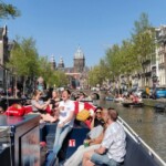 Day 2 begins in an orderly fashion with breakfast, a few pints and a handful of mushrooms. It’s sunny and warm, a perfect day for hitting the water-ways and a bit of sightseeing. The group spot an all can drink boat trip and decide to take advantage. Its 15 euros each, which is deemed to be an absolute bargain. Quaffing around Amsterdam in the sun drinking beer and wine is delightful. 3 hours fly by and before long its time for lunch with space cookies and beer the only things on the menu. Awesome!