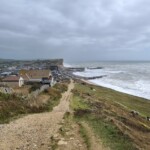 The harbour was a flurry of keen crabbers and we set off to the harbour arm to see the high tide on this stormy Tuesday. There are coastal walks along the cliffs and so you can choose to walk these if you wish, which we did to get a better view.