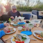 Arriving at South Walsham we find a spot alongside some other boats. We are out the wind but in the sun which is setting fast. I take a stroll up the mooring path and take a seat on a fishing jetty. Its so very peaceful. Back to the boat for roasted vegetables and salmon. A game of Rummikub brings the day to an end, the sun sets and everyone retires. We open the roof hatch in our bedroom and count the stars before closing our eyes.