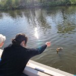 The water way is quiet and we all enjoy a go at the helm. The approach to Wroxham is delightful in the sun with some very nice waterside properties to look at. We arrive at Wroxham to find it busy with restaurants serving food and plenty of people but no parking spaces. We perform a handbrake turn heading back to the tranquillity of the open water ways. Our destination from here is South Walsham, past the Wroxham Broads. We stop off half way for an emergency cup of tea and a game of Scrabble. Our mooring skills are now pretty good and we pull up in the half shade and put on some deep house music. Nan wins the game of Scrabble and we feed some of the baby ducks floating by. What a great day.