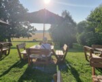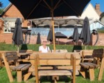 The destination for said lunch was The Marquis luxury hotel, which is just a few minutes down the road. Upon arrival the Queen was greeted by staff and asked where she would like sit. The hotel wasn’t very busy and there was plenty of seating available. A nice little spot in the shade with a panoramic view of the countryside was selected. The waiter promptly set about raising the brolly for shade and the Queen majestically quaffed into her seat.