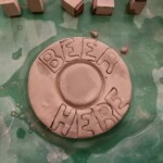 2 hours later (yep, it takes a while to get things just right) the clay had been transformed into a beer holder. Using the bottom of a can of beer as a template, it was used to create the perfect mould for the centre, then it was just a case of finding a circle cutter and adding a simple message around the outside. Absolutely brilliant!