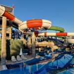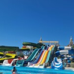 There is a long bridge that traverses the pool and zig zags over a lot of it. This leads down to a section where the water slides are on the left and on the right there is a fun fair. (not really for adults, but you can have a go if you like of course).