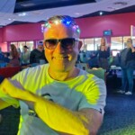 The next game is for a couple of lines and the prize is a Lilo. The numbers are called and when the number can be related to a song, the song plays and we all get down the front and have a jolly good rave up, and the bingo continues.