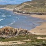 So, what’s the attraction? Well, the miles of really golden sand are probably a good start, plus the huge surf, the sand dunes etc. etc. Yes, it’s a pretty impressive place. Starting from the village, it’s easily accessible which is ideal if you’ve got young ones in tow and you could just plonk yourself on the sand close to the village, put down your beach towels and relax. There’s a selection of cafes and bars close by, serving snacks and drinks throughout the main holiday seasons. If the tide’s right out, do the place justice and have a walk up the beach to Ligger Point, just a 2-mile jaunt away.